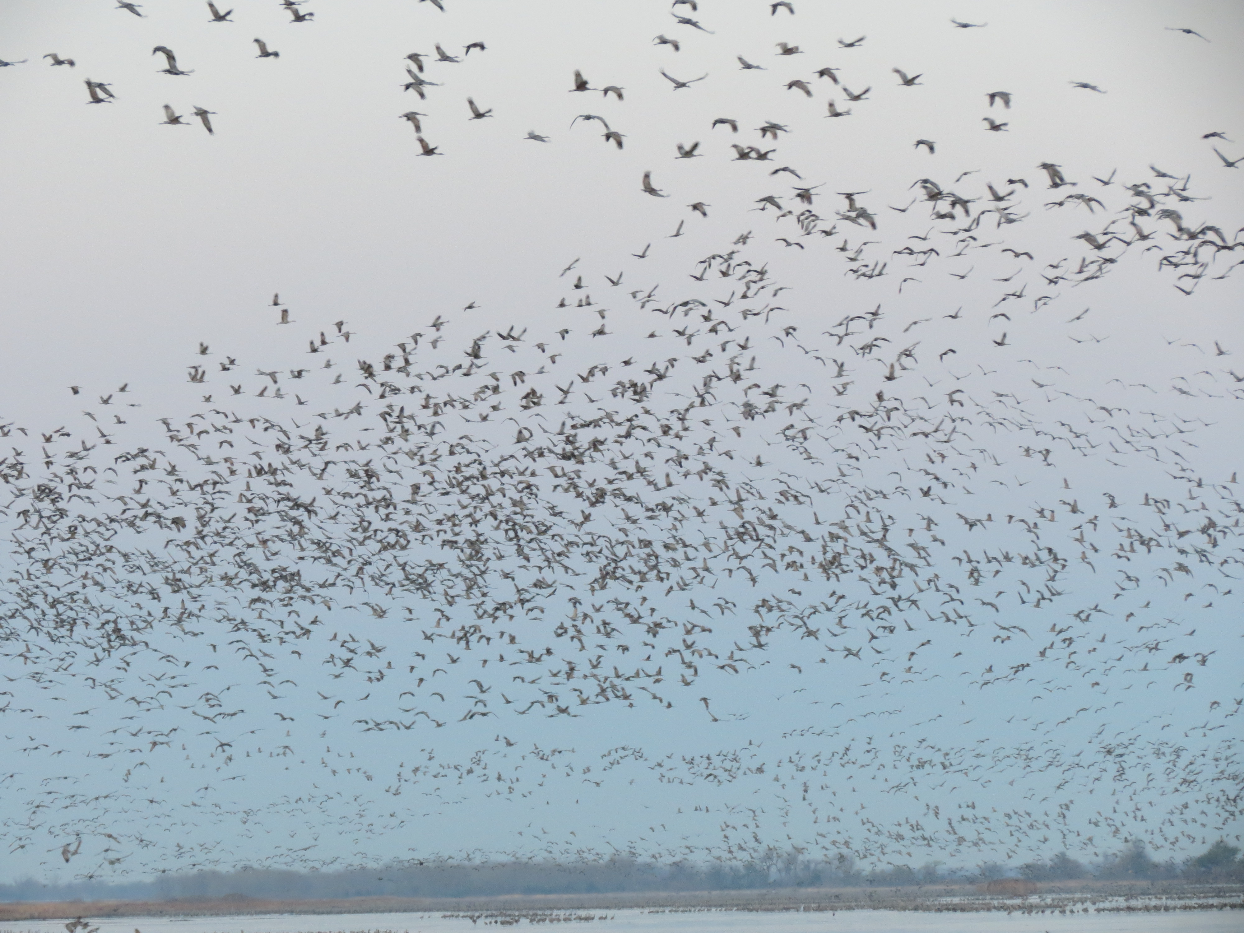 I hit the ground running. Three hours after arrival, I was guiding a group to Stevie’s Blind, the first of the 19 consecutive tours I would guide. We were busy; for the first time, I experienced all 5 blinds being open simultaneously. I was in Jamalee 7 times, Stevie 5, East 3, Tower 2, and North 2. All the trips were good for crane viewing. I got to see cranes in the fog one morning, which was very special, as the birds appeared like ghosts in fog as the light slowly increased. A few took off, but it was special, and there were remarkably few birds we saw, although we heard thousands more!!
