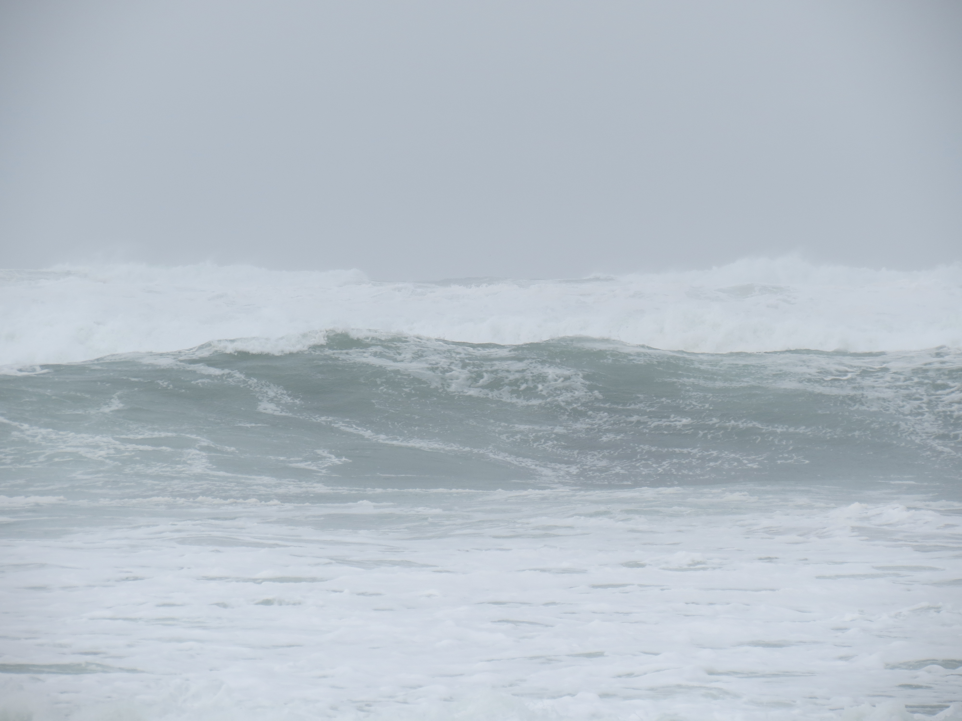 I went over the dunes, walking down to the nearly flat beach. The waves were high, but there was a lot of wet beach that waves did not come up to often. But wet beach=water, and I did not appreciate that obvious sign. Suddenly, one wave appeared quickly. I started to walk, but the wave overtook me, water reaching mid-calf and into my boots. I laughed, thought it fun, as the shore was relatively flat, and wet feet weren’t going to ruin my day. The ocean had warned me. Nature warns, but we have to listen. I did not.