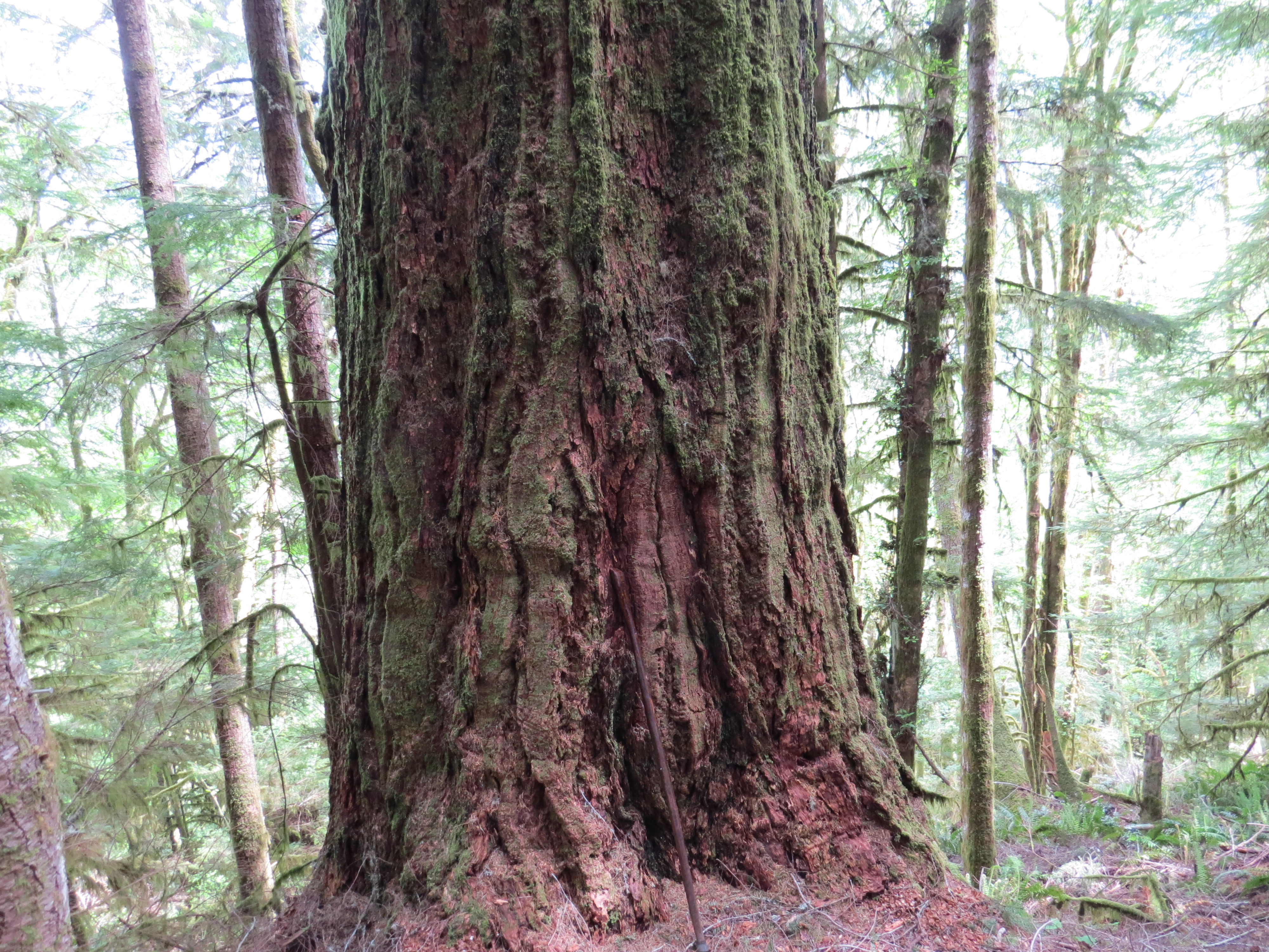 Douglas Fir, with 1.3 meter (4 foot) walking stick for comparison.