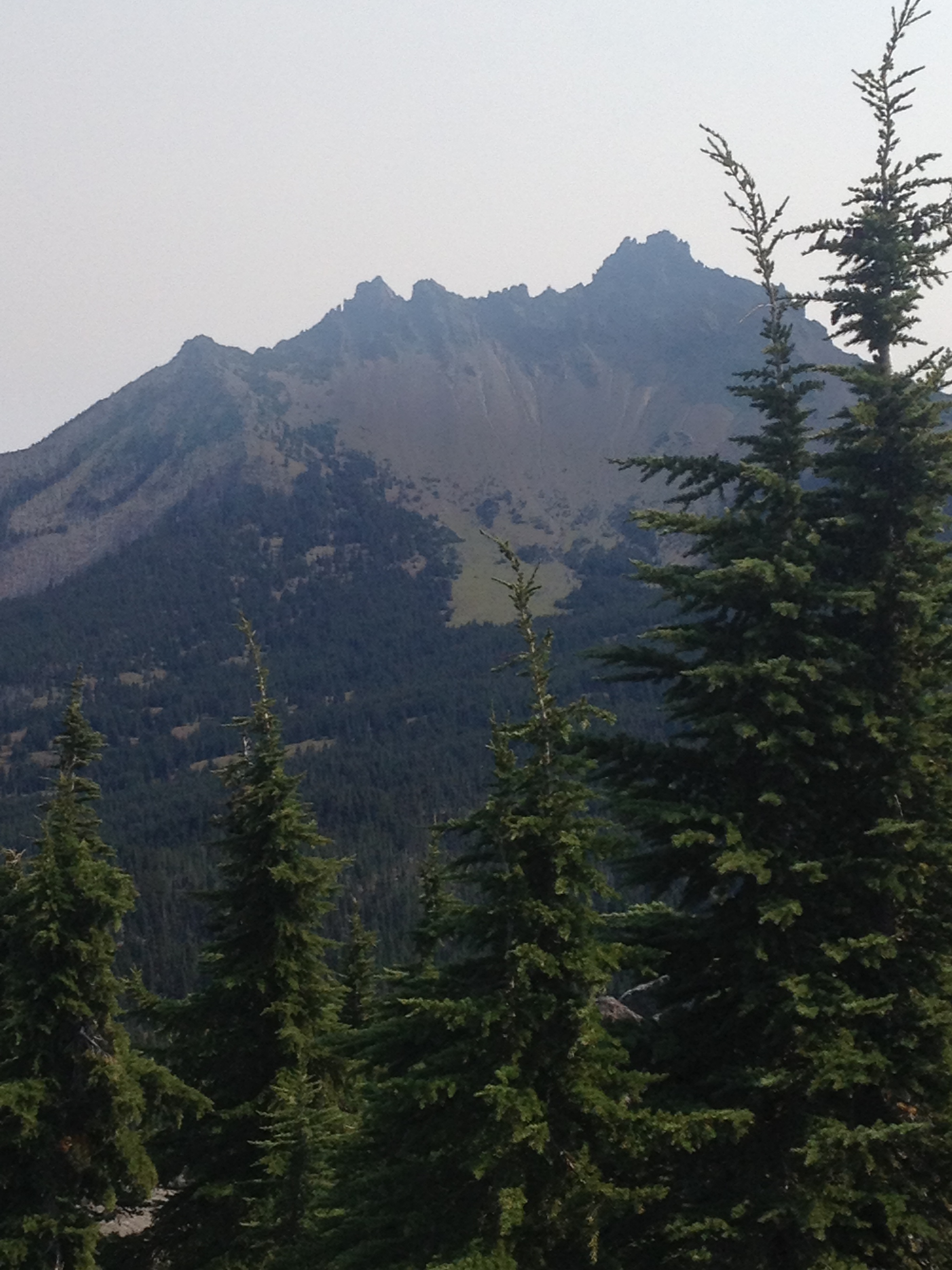 Maxwell Butte is a 5 mile hike into the Jefferson Wilderness, climbing 2500 vertical feet to the top, just over 6200 feet. From the Butte, one can see the high Cascades from Mt. Hood to Broken Top. On a clear day, one might see Diamond Peak, too. It is a steady climb, and good trail work by the Obsidian Hiking Club, of which I am a member, has made the big gouge in much of the trail a resting place for downed trees, in an effort to stem erosion.