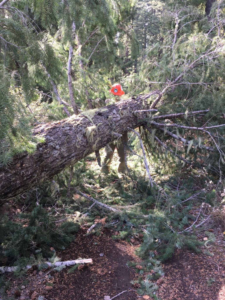 We still had a couple more logs I knew about, because I had scouted the trail ahead of us, and after losing it, and cussing the people who didn’t replace diamonds (that would be me in part), found it again, and led the group to the next cut.  In addition to diamonds, I was using strips of pink ribbon that I could tie to plants.  Pink or orange ribbon has helped me find trails many times.