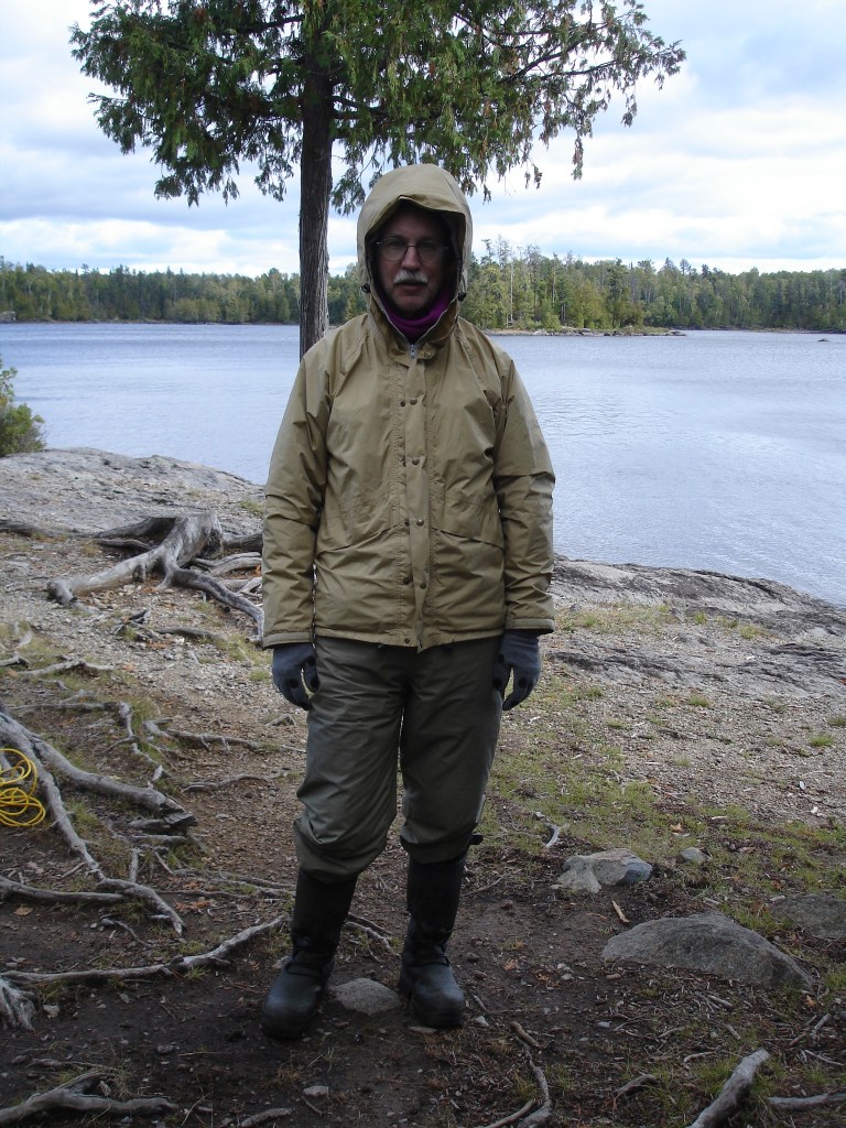 It wasn’t until I spent 6 months in the Boundary Waters that I learned to deal with rain in the woods, the single best lesson I learned up there. I watched what others wore and did, and I copied them. I had good rain gear. No, it didn’t color match (nobody’s did), but it kept me dry. I went out in early July to west Basswood, where we patrolled in the motorized zone with a small boat powered by an 8 hp Yamaha. Heading east on Fall Lake in 50 degree temperatures, pouring rain, sitting in the bow, my outer layers were soaked but I was fine. That whole 4-day trip was with on and off showers, and it was an effort to keep a pair of dry socks, but it worked. Dry socks for night are a must. Eventually I had to put on wet, cold socks in the morning. At least they were wool—it only felt awful for a few minutes– until they warmed up.