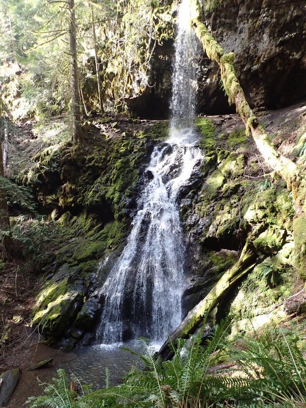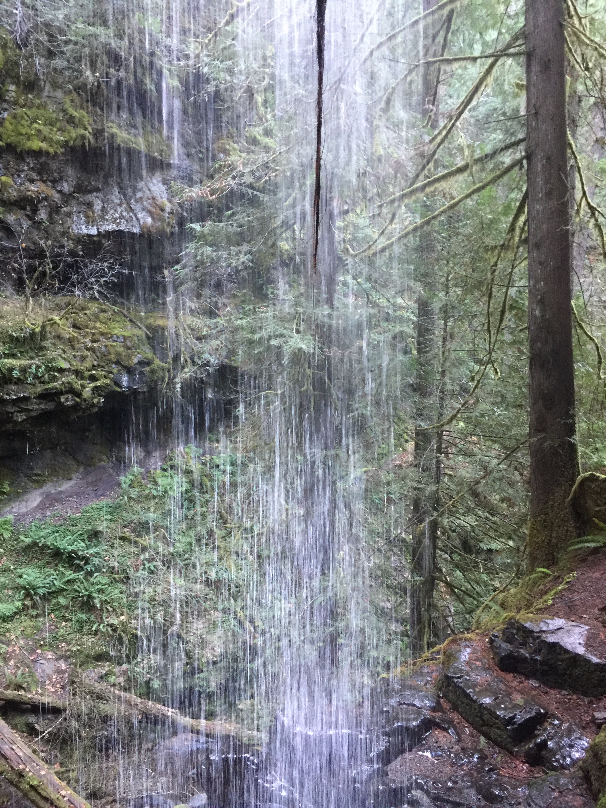 This lunch spot was special. I had a bird’s eye seat at Upper Trestle Falls, and I can stare at water for hours. I watched the water hit the creek far below and drop towards Brice Creek, then the Coast Fork, the main Willamette, and finally the Columbia before entering the Pacific Ocean. I wasn’t too concerned about the distance the water was going to travel. I was savoring my food, relaxing for the thirty minutes I allotted myself to finish raisins, chocolate, and apple, get a good drink, and steel myself for finishing this part of the trail before going back down and working on a root wad.