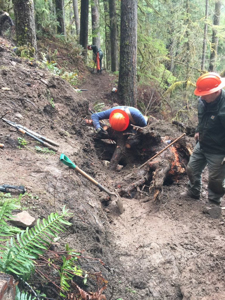 A couple of years ago, in winter, I worked widening a trail near Upper Trestle Falls, above Brice Creek in the Umpqua National Forest. I had significant job constraints: a rock cliff on one side and a 50 foot drop off down the other on the other side, with maybe 4 feet of usable space between.