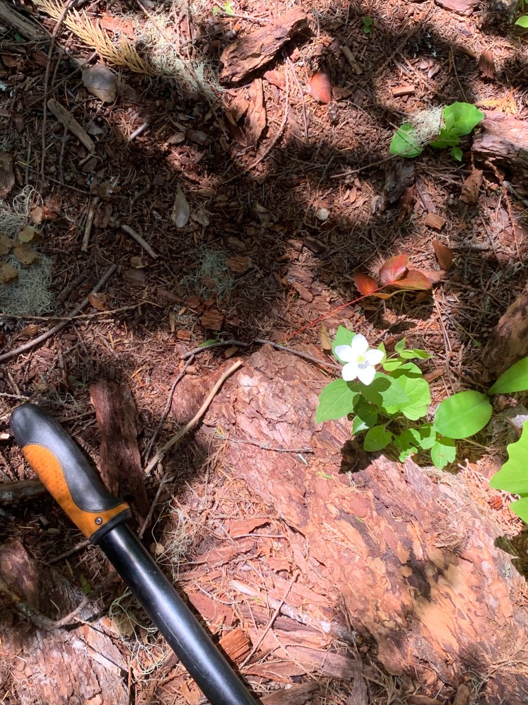Sometimes, I have lunches at overlooks near the trail, other times, it’s just on a nearby log, with a place to put my foam pad and weary body, and stare at the woods across the way. On Gold Point Trail, I relaxed against the steep backrest of the cliff behind me, staring at a tree that I suddenly noted had at least nine holes drilled in it for various nests, a woodpecker apartment building. You see a lot more in the woods when you can stop and just stare, without specifically looking for something. Trail work gives one plenty of chances to do that. Last week, lunch was near Lillian Falls below us, in lovely shade before we headed off to a remove a series of large logs that would be in bright sunshine, although when I played my cards right, I was able to wrangle the side in the shade to do my cutting. Lunch marks the half way point of the work day, it is the end of the best work I am going to be doing, and I need to pace myself carefully for the rest of the day, both working and for the hike back out of there. I’ve still got an extra protein bar in the lunch bag; somewhere in the backpack are more calories. They need to be swapped out for something with a more recent expiration date, and I am not sure where they are, other than I know they are in there, along with a small bottle of water that is always good to see when it’s a hot day, and I have been vigorously hydrating.
