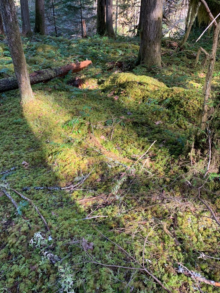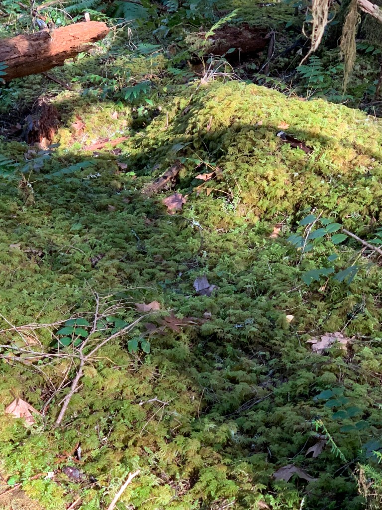 The following week, we would come back, but I ate lunch by the trail, my back against a tree. I sat on bare ground. The mossy area looked good, and I left it alone.