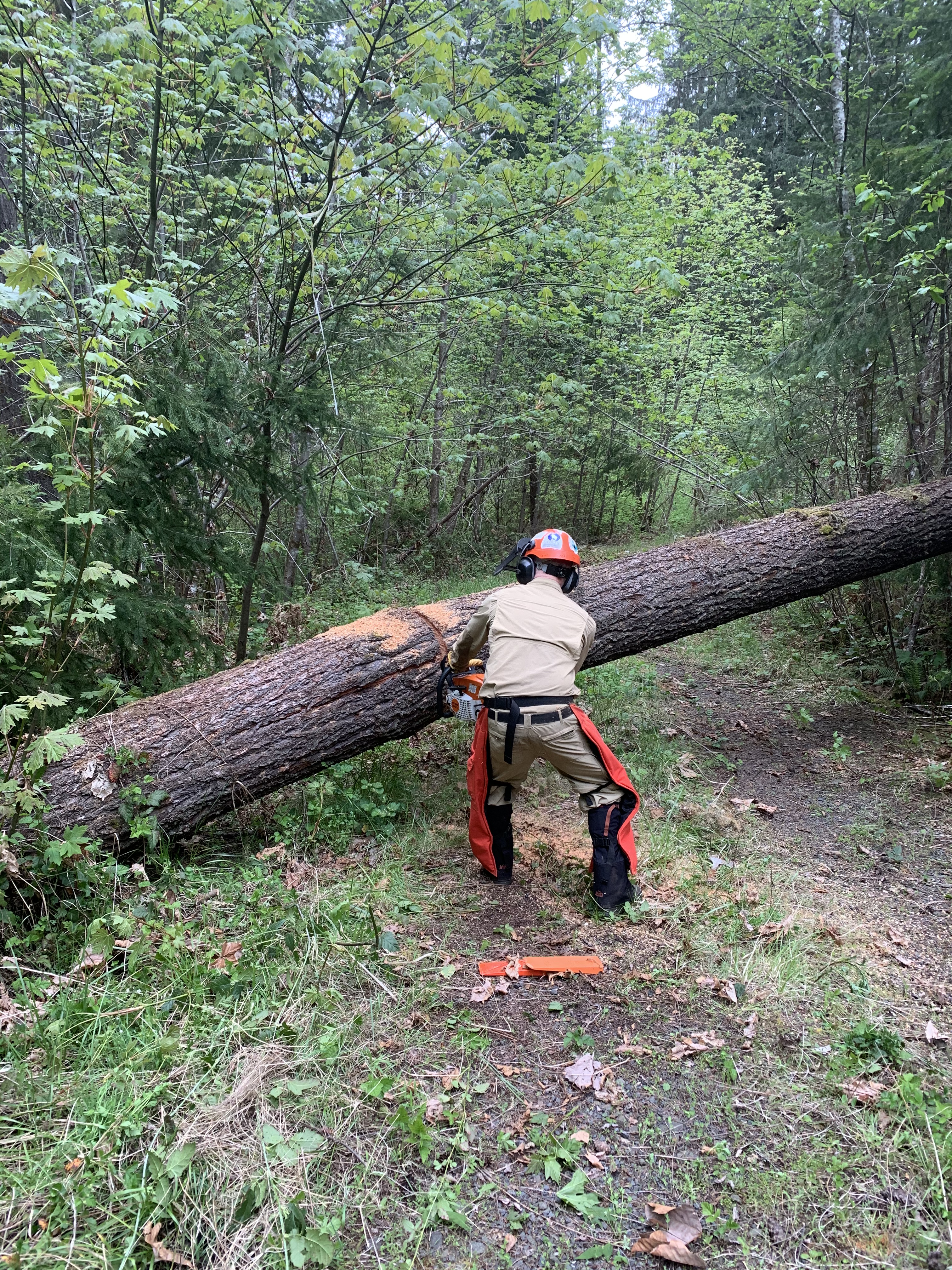 That following week, two of us drove to the top of the passable road, where the second part of the trail ended and where the third part of the trail began. While we did that, others used power brushers from below and we worked our way down, cutting out logs that some cutters had cut part way through and then had left. That’s not good form and at the least should be flagged as a hazard with colorful tape, which was not done.