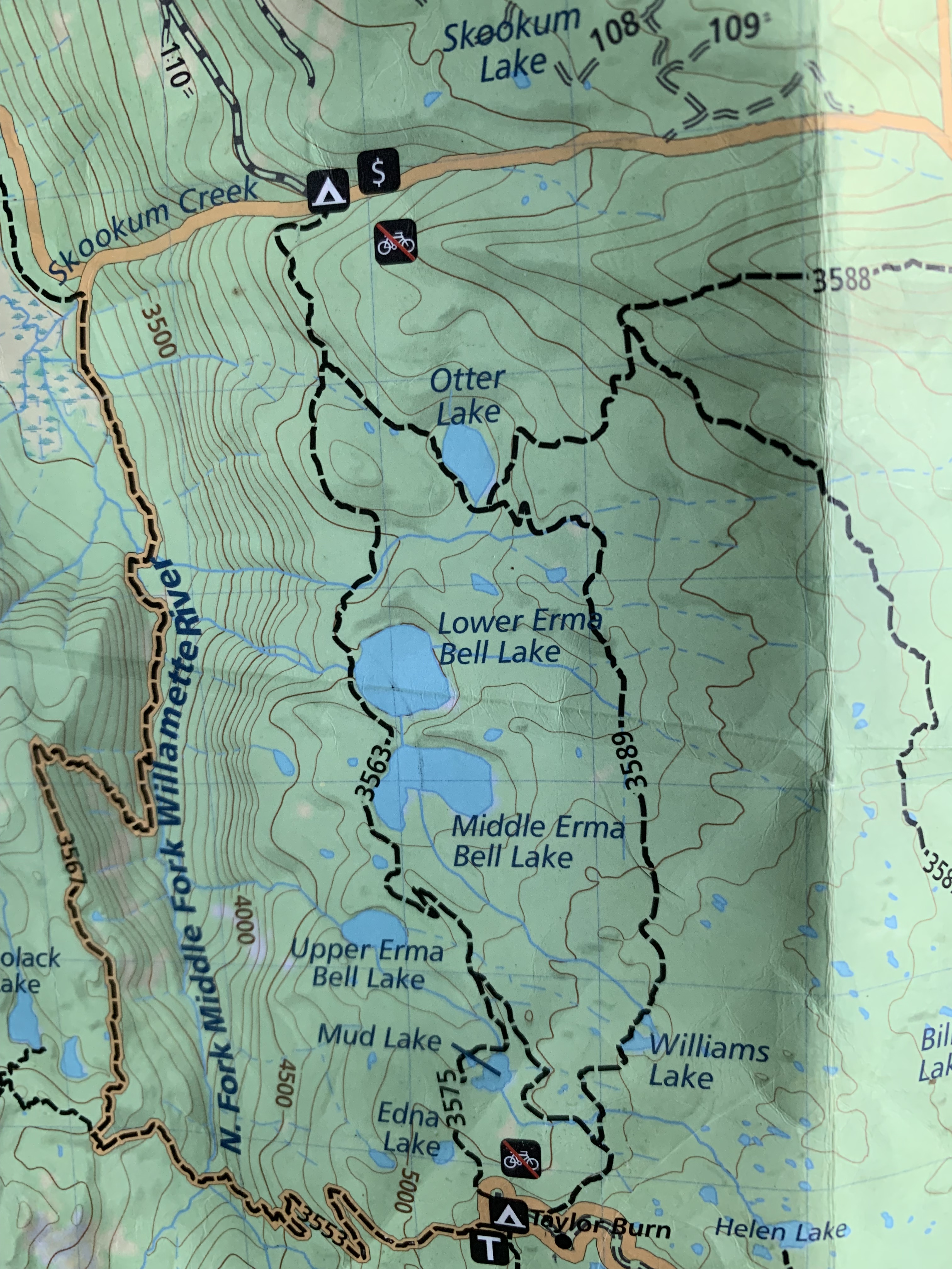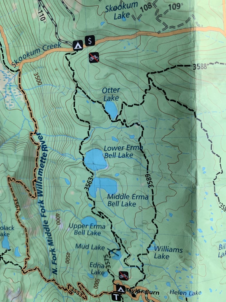 That line headed the email the leader sent out last week to the whole Crew and interested parties in the weekly summary of trail work. I had to read the words again: “Easy Day.” Say what? We had a 10-person crew for logout of the Erma Bell and Mud Lake trails, the former being a 9 mile loop around the three Erma Bell Lakes in the Three Sisters Wilderness; the latter’s adding a smaller loop south past Mud Lake to Taylor Burn. That’s enough people, right?