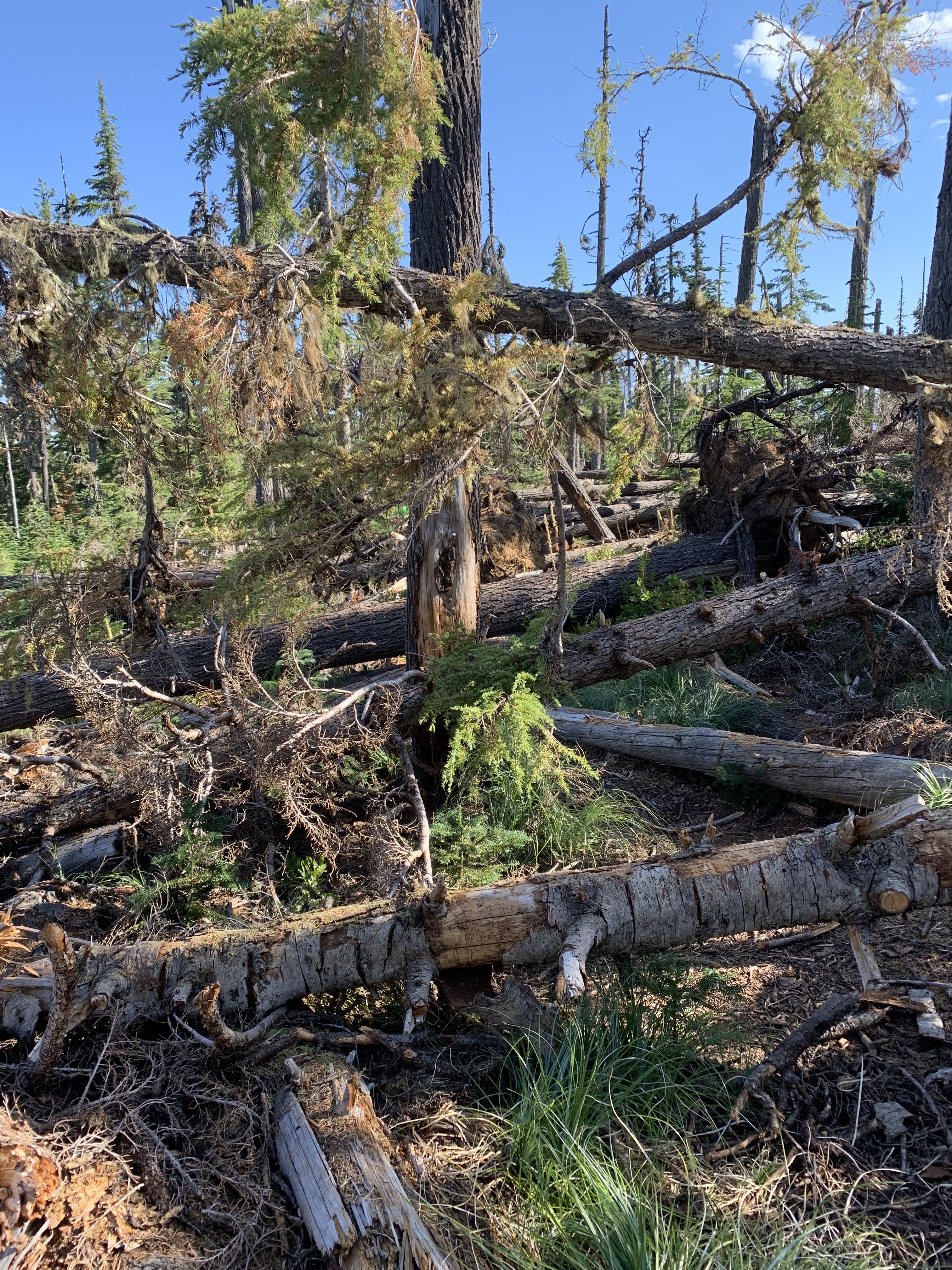 The log out was a typical day.  We had to carry our packs and take a tool: shovel, Pulaski, axe, big saw.  Logging out a trail while climbing, taking off and putting on your pack a couple of dozen times, taking out a saw, taking the cover off a saw, dealing with a downed log, is work, especially when it is hot and buggy, as it had been. I need a full day at home to recover, and I am in pretty good shape, unless my knee or Achilles tendon is bothering me, which are two current problems that receive daily ice. Drinking enough is critical.