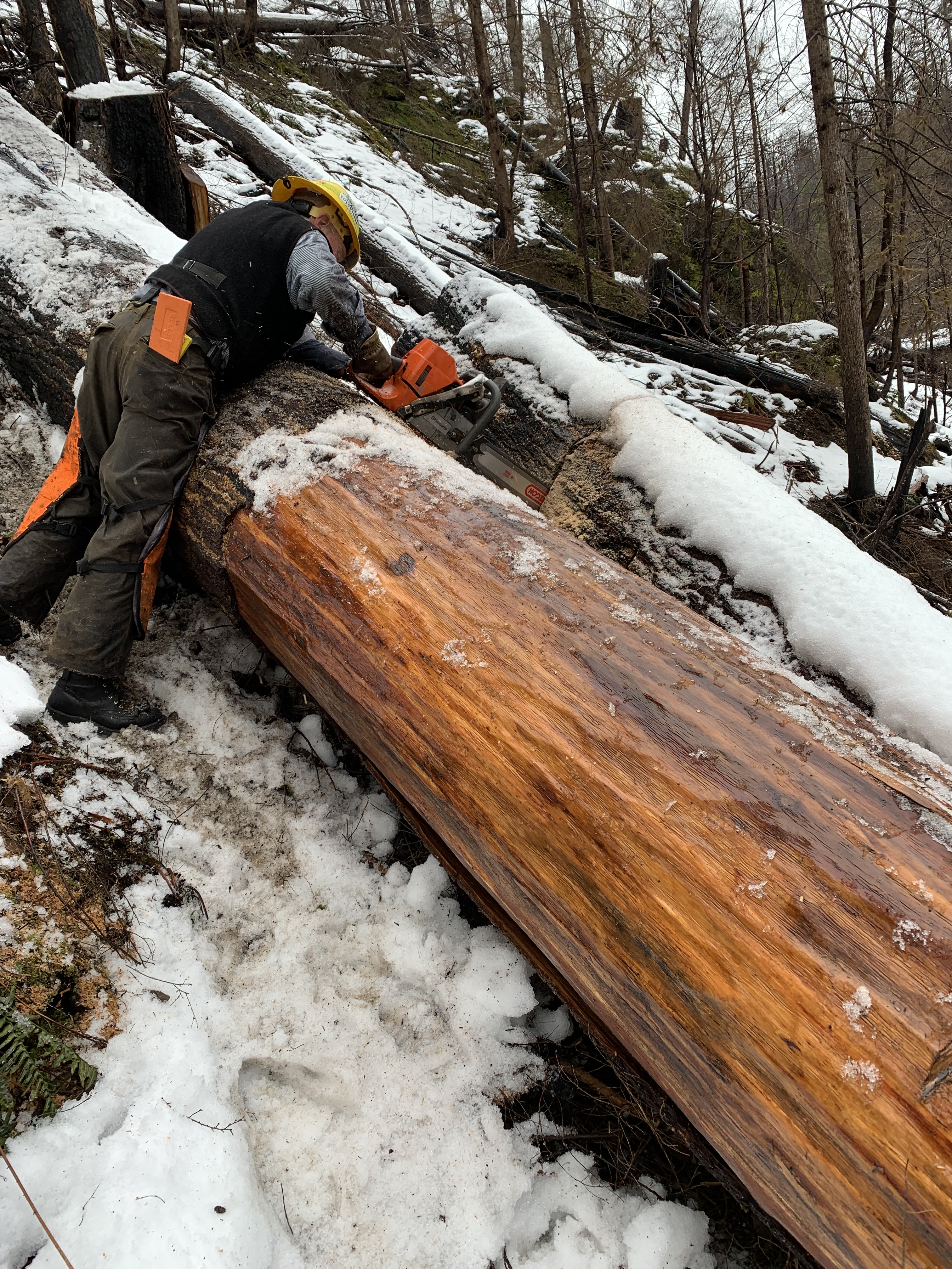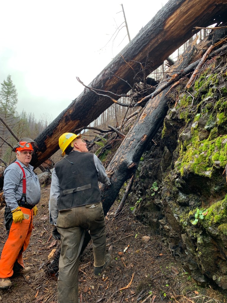 Ten days later, I was called and asked if I could go that week. I was told I would be doing a lot of standing around and if I didn’t want to do that, it was OK not to come. Are you kidding? Start work in a burn area with incredibly complex and interesting issues? I jumped at the chance and went out. There were only three of us, the other an A level power sawyer, still new to sawing. We spent the day working on three logs. A week later, I was asked again, and I went back out again.