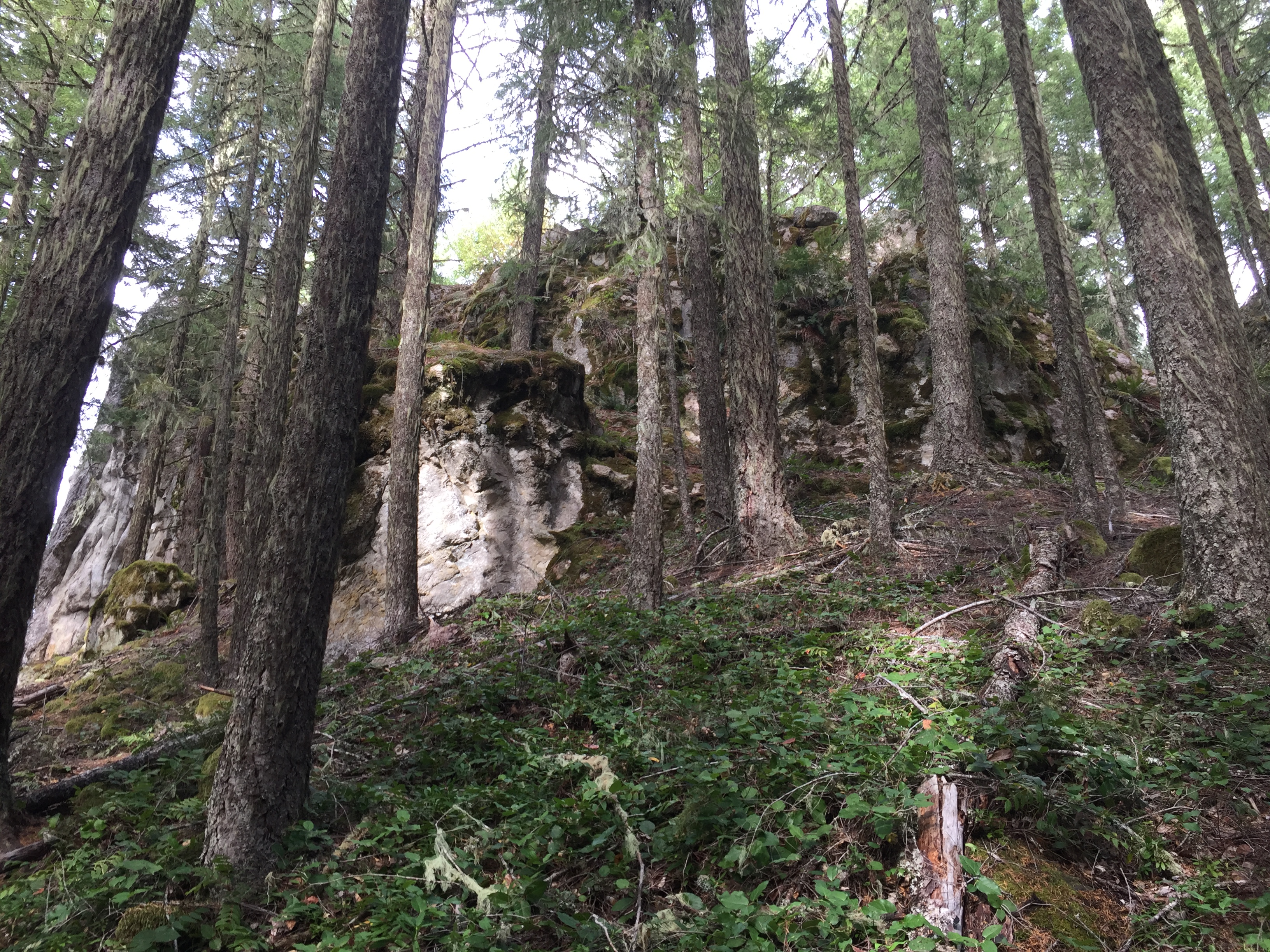Six of us started up the Larison Rock trail outside of Oakridge. There were supposed to be seven, but one person who thought he knew where the trailhead was, did not. There are two of them, one at 1200 feet (350 m)elevation, across the river from Oakridge; the other was a longer drive around the mountain and at about 2800 feet (850 m). We hoped he would find the right place and catch up.