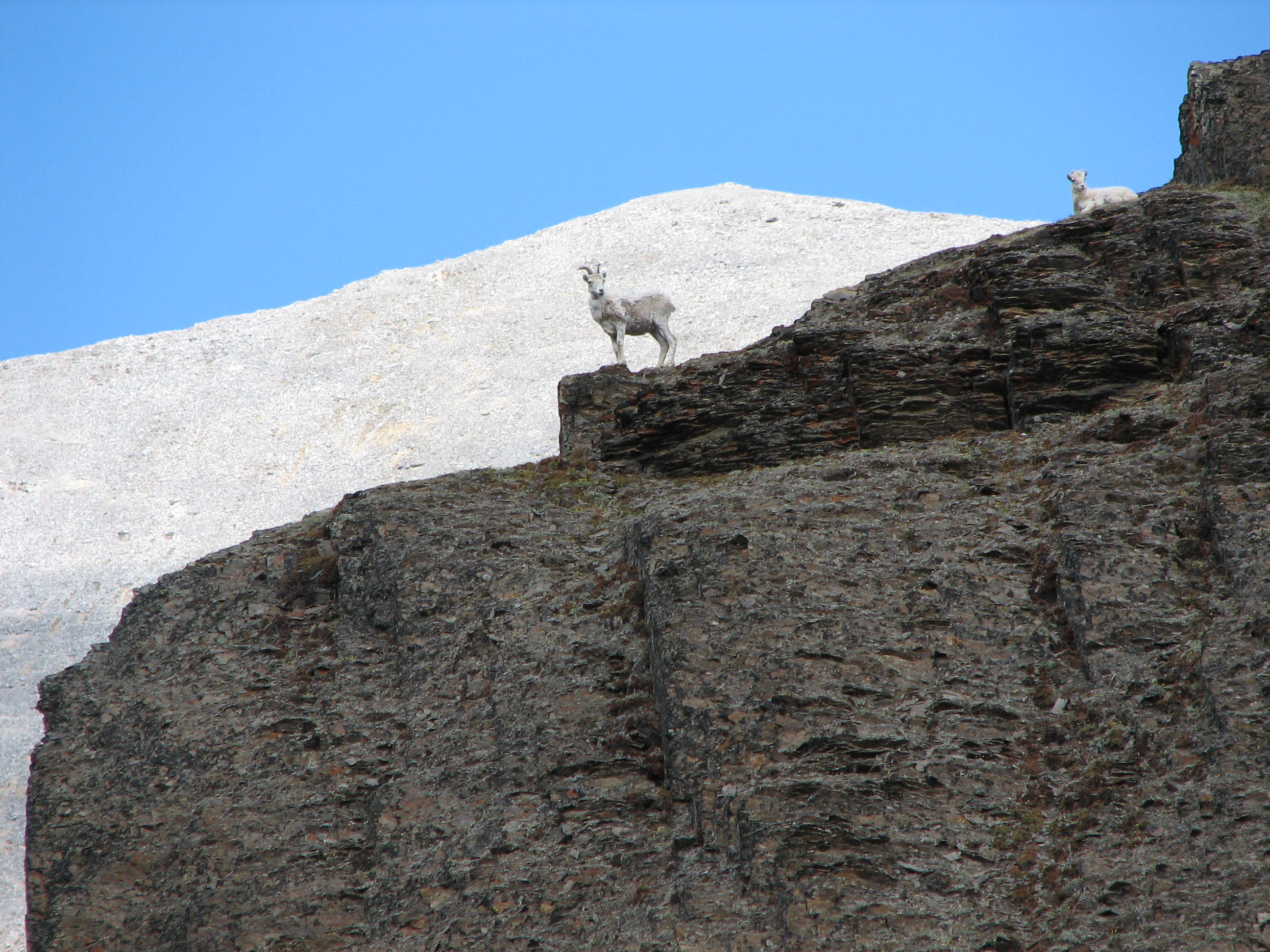 Dall Sheep on a salt lick.