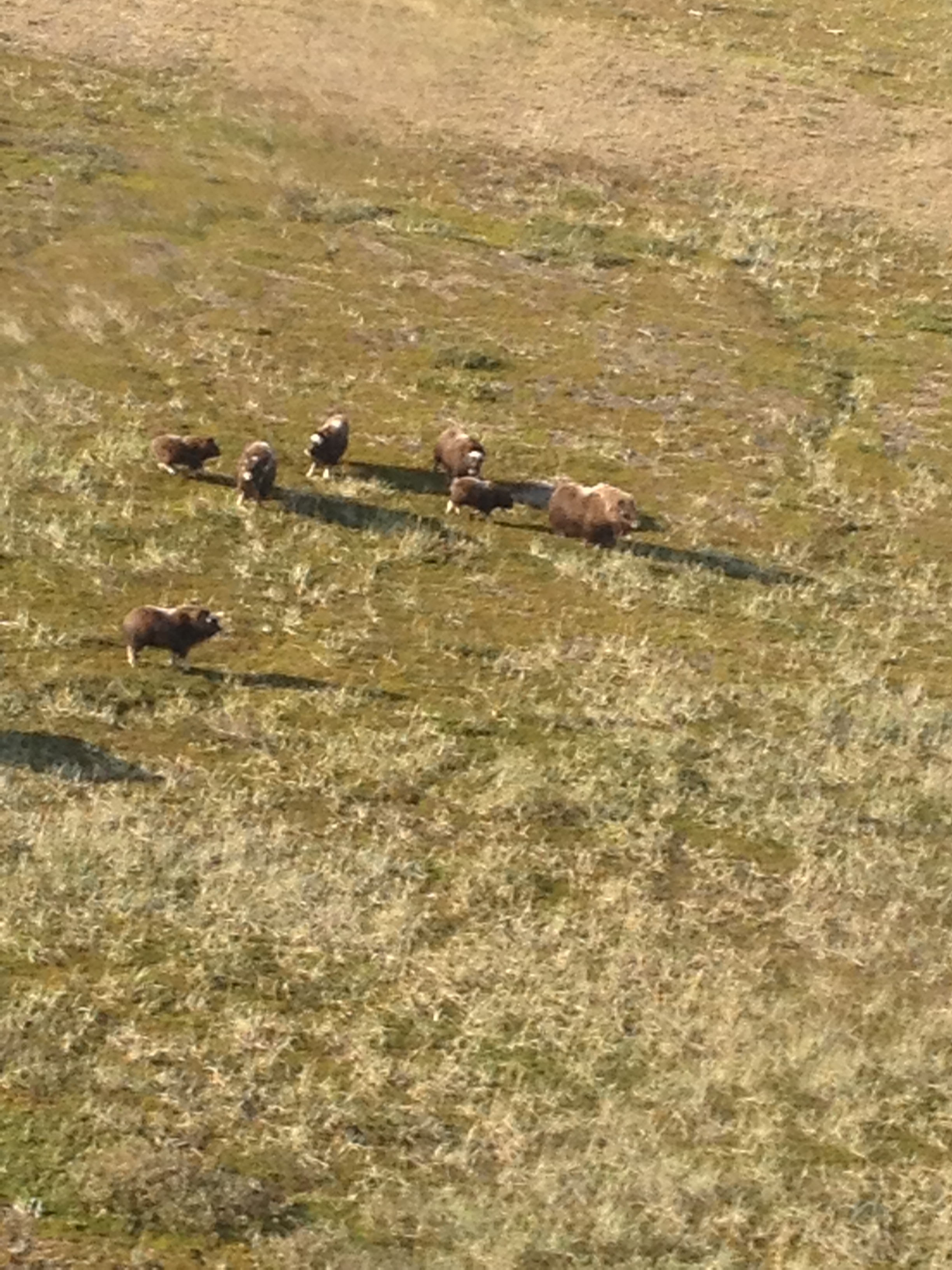 We camped our final night in a foggy valley, where we could clearly see the moisture funneling into the area from which we had come. We were mostly dry. I had hoped that on the flight back, we would fly over the coast and see the musk ox, that were clearly there. That didn’t happen, but when we landed, I spoke to the pilot, who agreed to take me and one of the people on the trip out off Cape Kreusenstern where we could see them.