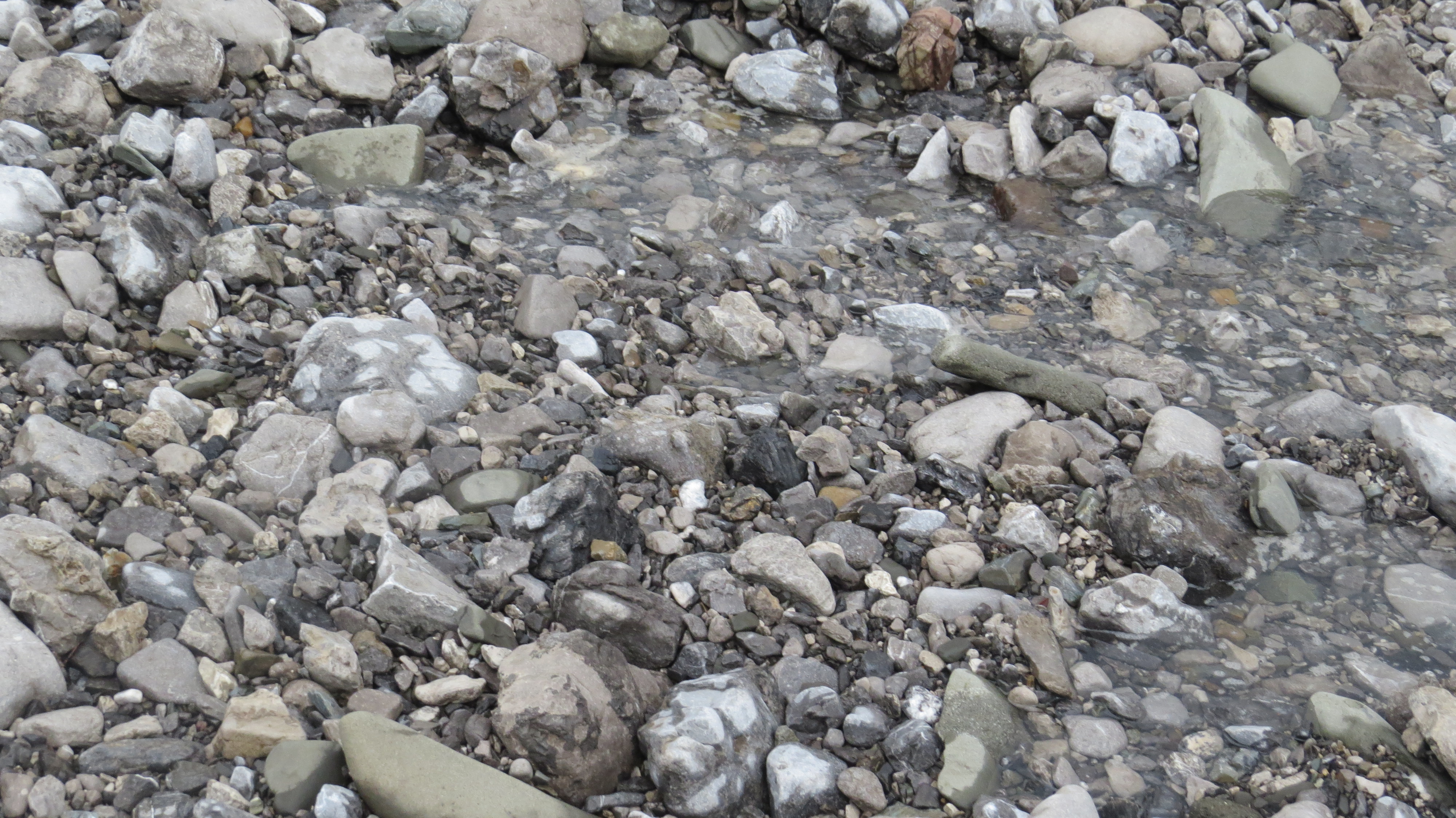 Water slowly moving down a stream bed.