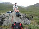 We bushwhacked in to the Gates from the Dalton was about all I said, but perhaps my tone of voice unsaid told them the rest of the story. I used a few words like “Oolah” and “griz”, “tussocks” and “Boreal.” We had climbed over a thousand foot divide, camping at what seemed like the top of the world, then traveled for 3 days in the rain in and by rivers, past Oolah Lake and more rivers, finally hiking six miles in flooded tussock country to Summit Lake. We saw a griz. I finally got to see Frigid Crags and Boreal Mountain—the Gates of the Arctic that Bob Marshall named. They had that look in their eyes—maybe I should call it The Look—which others have seen from me. It’s a far away gaze of longing, of thinking about wild country, of rivers that run free and few people in the Lower have ever heard of, like Aichilik, Nigu, Itchilik, Alatna, Hulahula, or Kobuk. It’s mountains and remote valleys, wild country, open horizons, where the Sun in summer travels in a circle above the treeless tundra. It’s slogging through tussocks, rivers, swamps, and in bear, caribou, Dall sheep, wolverine, and moose country. It’s hiking on residual ice, or aufeis, and bugs in June, blueberries and crowberries in July, rain, autumn colors and the return of night in August. It’s the most difficult country to hike that I have encountered, also the most beautiful. It is a country that kicks one’s butt, until finally one accepts it with the simple words, “It’s Alaska.” Everybody up here who has worn The Scent understands that.