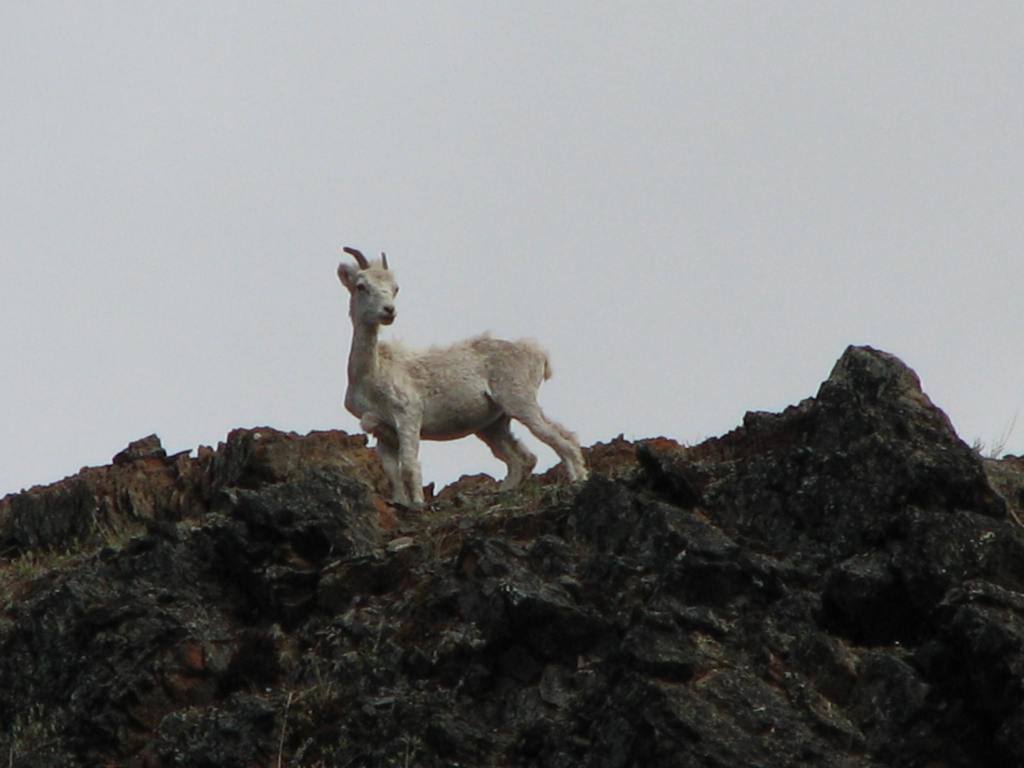 Dall Sheep on a salt lick.
