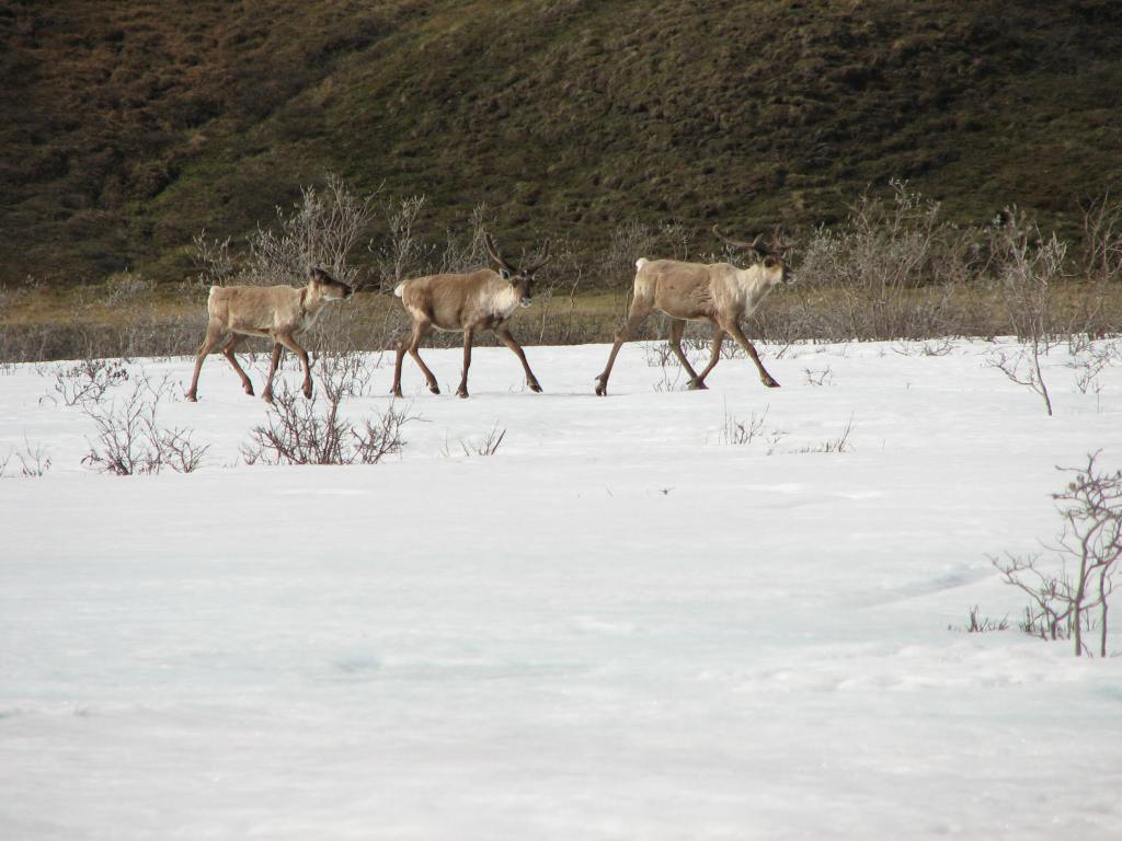 Caribou on aufeis, Aichilik River, Arctic National Wildlife Refuge, 2009.