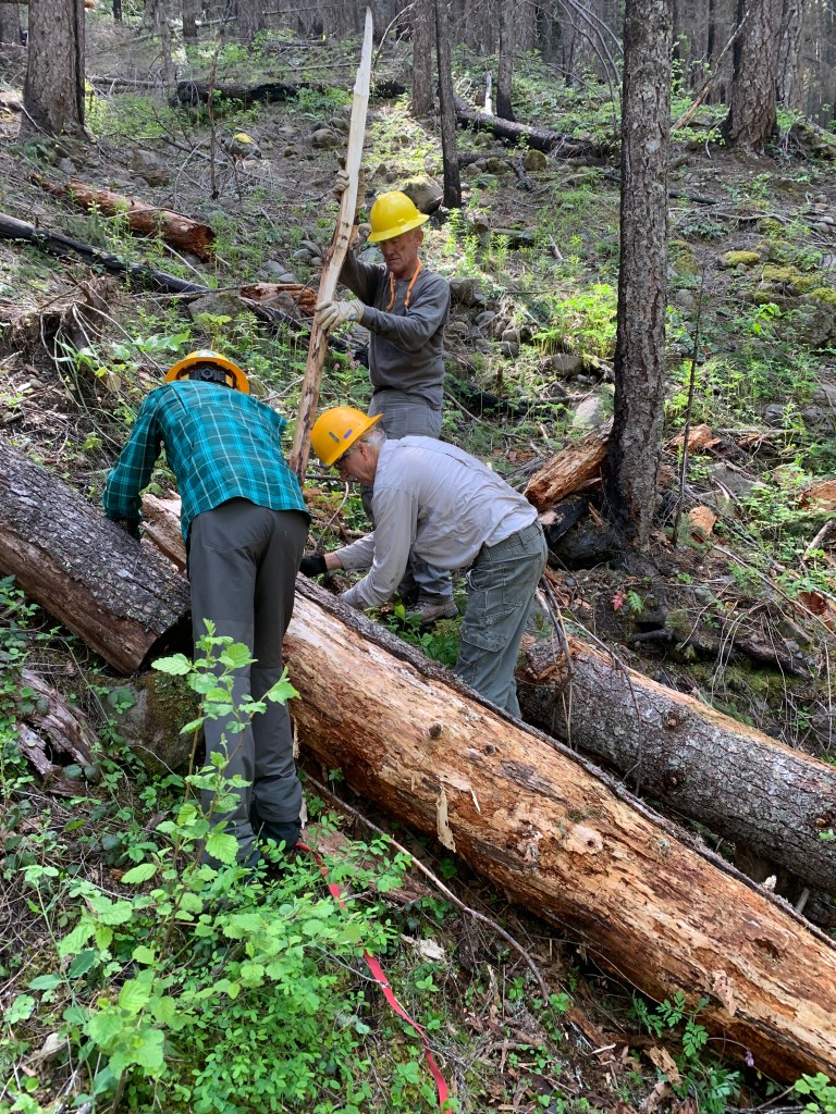 I dropped my pack at the Horse Creek Trailhead, opened it up, took my foam pad out, sat on the ground and lay back on the pad against my pack, knees up in the air. We had just completed 13.2 miles of the Separation Lake and Horse Creek trails, logging out the middle stretch of 2.7 miles. Three weeks earlier, we had logged out Separation Lake Trail’s 5.6 miles to the bridge over Separation creek. Two weeks ago, we had done the same at Horse Creek, on the far side of the drainage, finishing 5 miles later on a ridge, climbing 1700 feet in the process. Last week, we had cleared 3 miles of Louise Creek to the snow line, and this day, we did what we called the Horseshoe Loop, with a car shuttle, even finding a few newly fallen logs since our last visit.